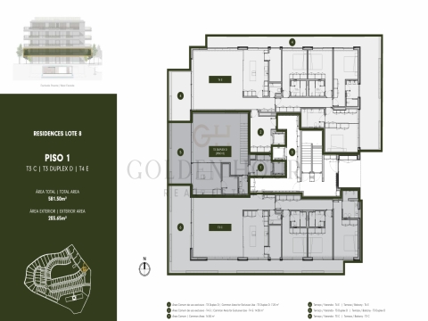 Cada lote conta ainda com dois pisos em cave, com cerca de 40 lugares de estacionamento.